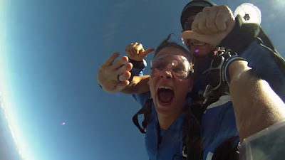 Clémence : "Sensation à couper le souffle ! L'instant ou l'on doit se jeter dans le vide est vraiment horrible, l'avion est en marche et il faut sauter à 4000m de haut !"