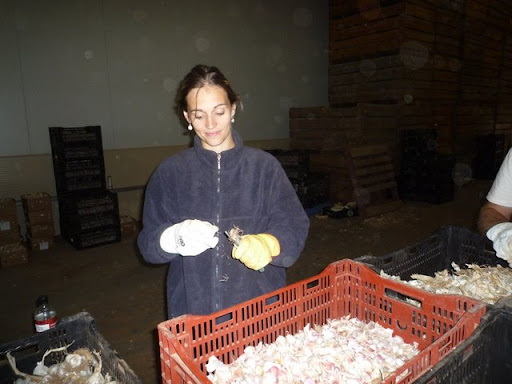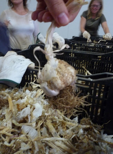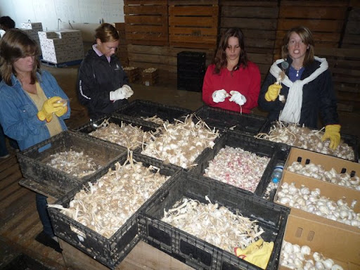 Après notre super weekend, il fallait vraiment que Clem trouve du boulot. J'ai trouvé une annonce de "garlic grading" littéralement: classement des ails! Donc le mardi soir c'est parti avec le van à 150km d'Adélaïde pour ce fameux job! Cela consistait en faite à éplucher les ails sorti de la terre et à les nettoyer.