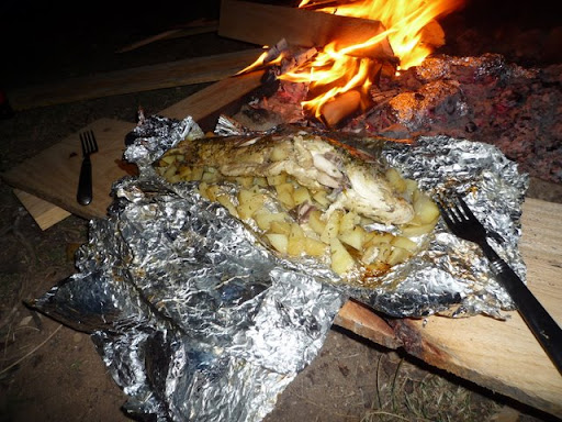 Le soir, on campait tous au bord d'une rivière très sympa et là encore la bonne ambiance permettait d'oublier les conditions de vie (pas d'eau, pas d'électricité, pas de toilette!), douche froide, dodo habillé car ça caille maintenant et parfois avec la compagnie de souris!!!