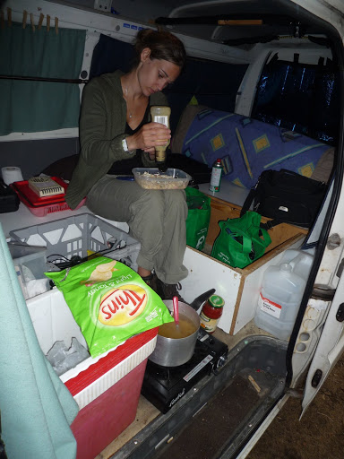On a pas encore eu le temps de faire le grand ménage du van et de l'aménager comme on veut mais j'y trouve mon petit confort quand même!