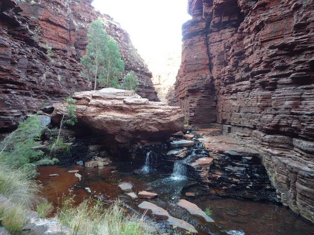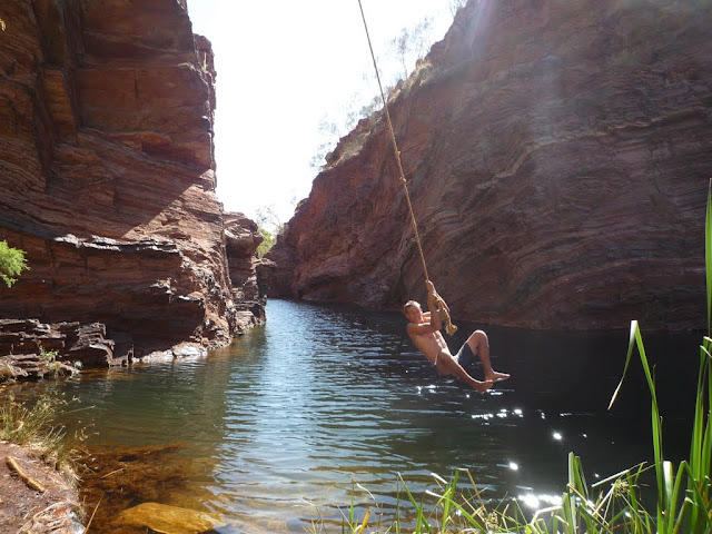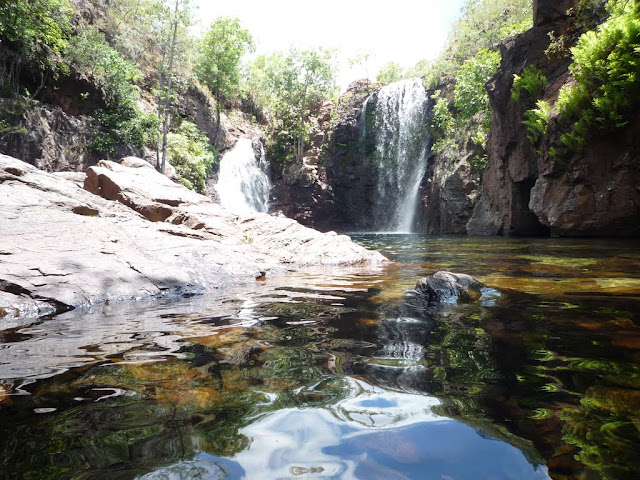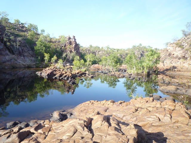 De retour vers Katherine, nous passons par Nitmiluk, un autre parc national où l'on peut se baigner dans les cascades ! Bon il y a toujours des crocodiles mais se sont des crocodiles d'eau douce pas très dangereux.