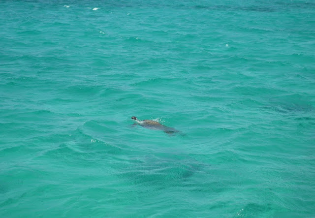 Turquoise Bay, plage réputée pour sa beauté et sa richesse en corail et poissons. Effectivement, on nage avec 3 tortues pendant une 10aine de min! C'est grandiose!