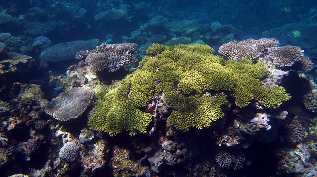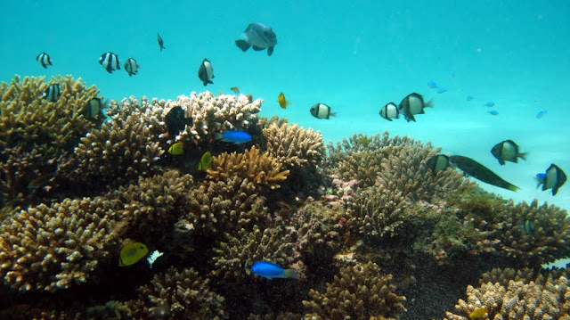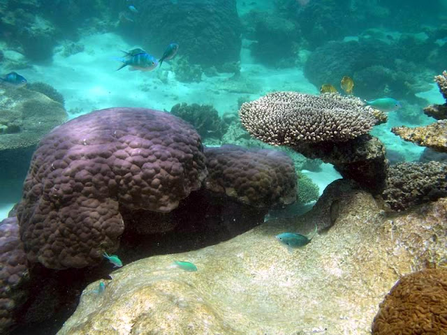 Nous sommes maintenant au niveau de la barrière de corail de l'ouest (qui n'est pas la vraie bien sûr, la grande barrière se trouve à l'est), celle ci se situe tout près de la plage et donc on peut y avoir accès en nageant.